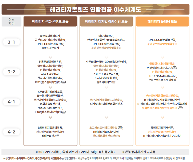 Academic 학사안내 메인으로 이동 학사안내 학교소개 입학안내 대학 대학원 학사안내 대학생활 동아광장 개교80주년 닫기 교과과정 수업 교과과정 학적 성적 졸업 비교과 과정 다전공안내 학점인정 신청 등록 장학 예비군 서비스 바로가기 닫기 글로컬연합대학 Field 연합전공 안내 전공 마이크로모듈제 안내 교과과정 안내 글로컬연합대학 Field 연합전공 안내 닫기 교과과정표 연합전공 안내 교과과정표 공지사항 자료실 QNA 닫기 학사안내 Academic 학사안내 수업 수강신청 및 수강정정 개인 강의시간표 수강신청확인서 강의실별 강의시간표 조회 재수강 안내 계절학기 등록금 고지서 계절학기 등록금 납부확인서 계절학기 수강취소 신청 시험안내 공결 안내 및 신청 학교현장실습 신청 학습관리시스템(LMS) GeLC(부산울산경남권역 이러닝지원센터) 영호남4개대학 (조선대학교) 영호남4개대학 (원광대학교) 영호남4개대학 (영남대학교) 교과과정 전공 마이크로모듈제 안내 교과과정 안내 글로컬연합대학 Field 연합전공 안내 연합전공 안내 교과과정표 공지사항 자료실 QNA 학적 휴학 복학 제적 자퇴 재입학 전과 학적조회 / 정정 성적 성적관리 기준 성적조회 강의평가 학사경고 유급 이수구분변경 졸업 졸업기준 안내 졸업논문 학사학위취득 유예 조기졸업 비교과 과정 비교과 홈페이지 바로가기 다전공안내 다전공 이수방법 요약 다전공 개요 복수전공 부전공 연계전공 자기설계연계전공 융합전공 교양 학사학위과정 학점인정 신청 특별학점 인정 사회봉사학점 군복무 중 취득학점 인정 등록 등록금 납부 안내 등록·장학 내역 조회 등록금 납입확인서 교육비 납입증명서 등록금 분할납부 신청 장학 장학 공지사항 장학 규정 및 지침 국가장학금 안내 학자금 대출 안내 장학금 인터넷 신청 장학내역 조회 장학금수혜확인서 예비군 예비군 훈련 안내 예비군 신고 안내 공지사항 서비스 바로가기 2026학년도 1학기 수강신청안내 대학일자리플러스센터(인재개발과) 학생군사교육단 학사안내 FAQ 전공 마이크로모듈제 안내 교과과정 안내 글로컬연합대학 Field 연합전공 안내 글로컬연합대학 Field 연합전공 안내 SNS 목록열기 FACEBOOK 공유하기 TWITTER 공유하기 BLOG 공유하기 KAKAO STORY 공유하기 SNS 목록닫기 인쇄 url 복사 연합전공 안내 교과과정표 공지사항 자료실 QNA 수소에너지 연합전공 교과과정표전력반도체 연합전공 교과과정표첨단콘텐츠 연합전공 교과과정표융합디자인 연합전공 교과과정표휴먼메타케어 연합전공 교과과정표헤리티지콘텐츠 연합전공 교과과정표